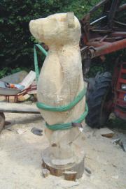 Der StandortDie Skulpturen sollten keinen direkten Bodenkontakt haben. Ideal ist eine Unterlage, welche einen Luftzwischenraum zwischen Holz und Boden bietet. So kann die Skulptur auch von unten abtrocknen. Ansonsten sollte ein geschützter Standort gewählt werden (keine extreme Sonneneinstrahlung, Wird die Figur über Winter ins Trockene gestellt, muss ein Ort gewählt werden an welchem eine Luftzirkulation stattfinden kann, da ansonsten durch die Restfeuchte im Holz Schimmel auftreten kann.
